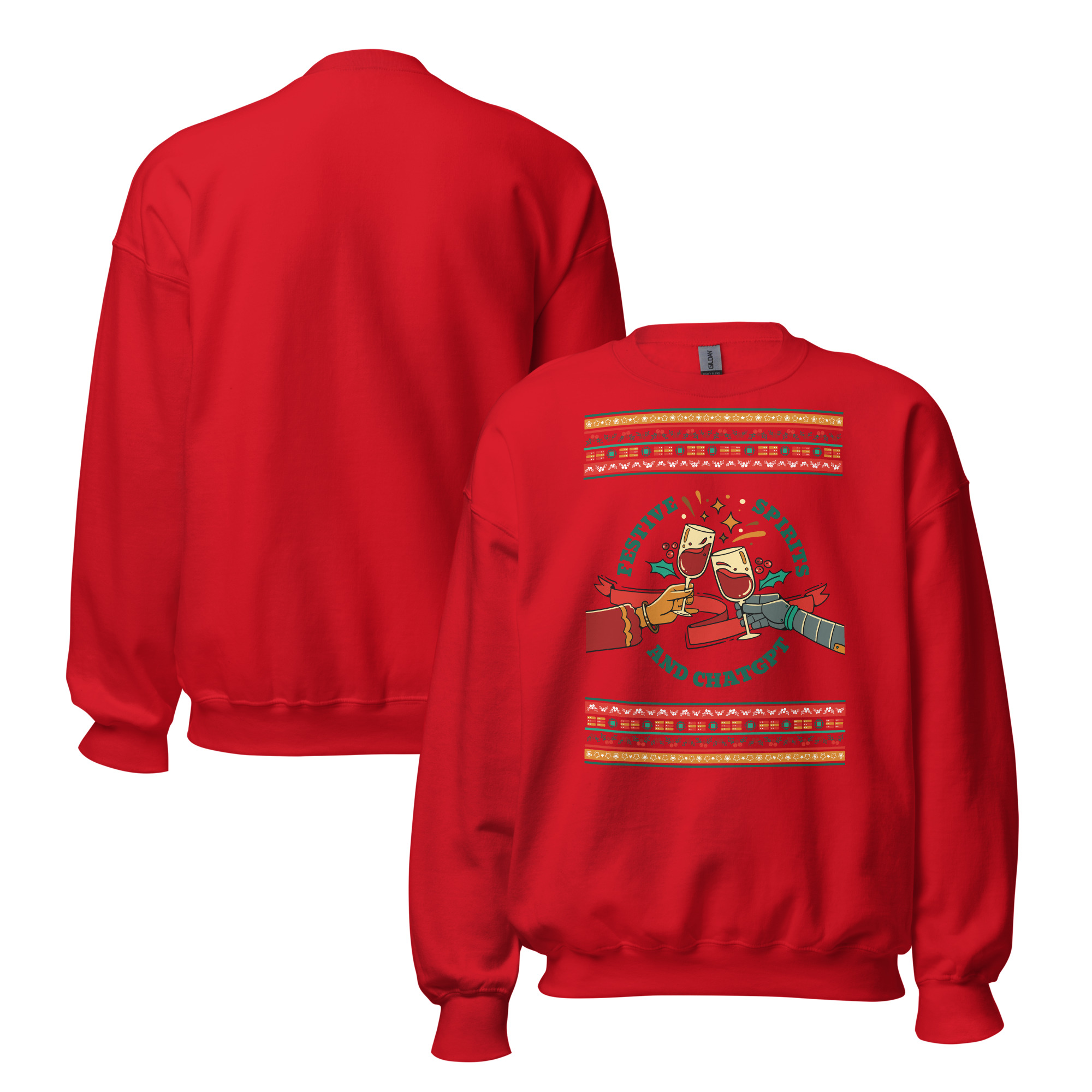 “Festive Spirits and ChatGPT” Cheers Version (Sweatshirt)