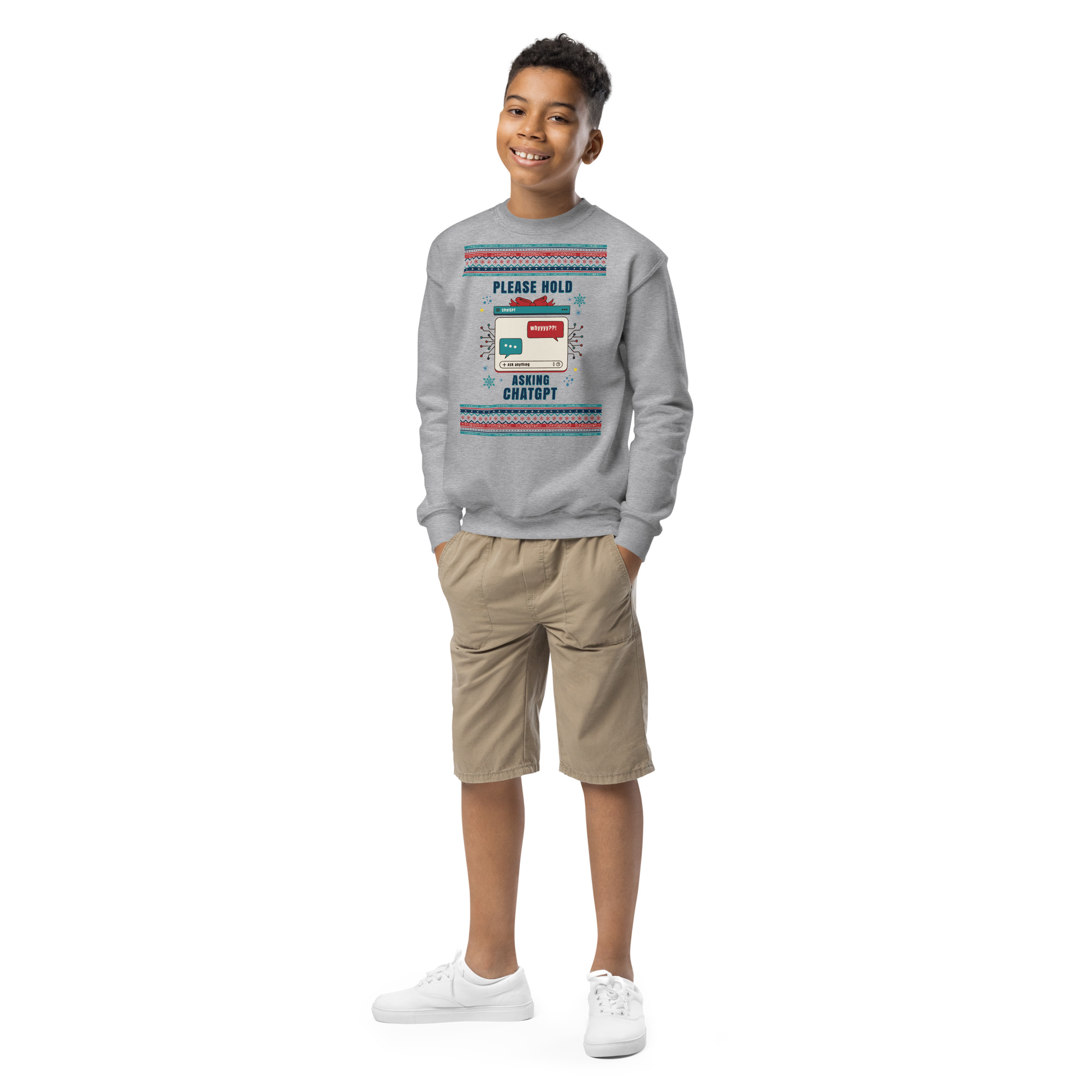 Kids “Please Hold, Asking ChatGPT” (Sweatshirt)