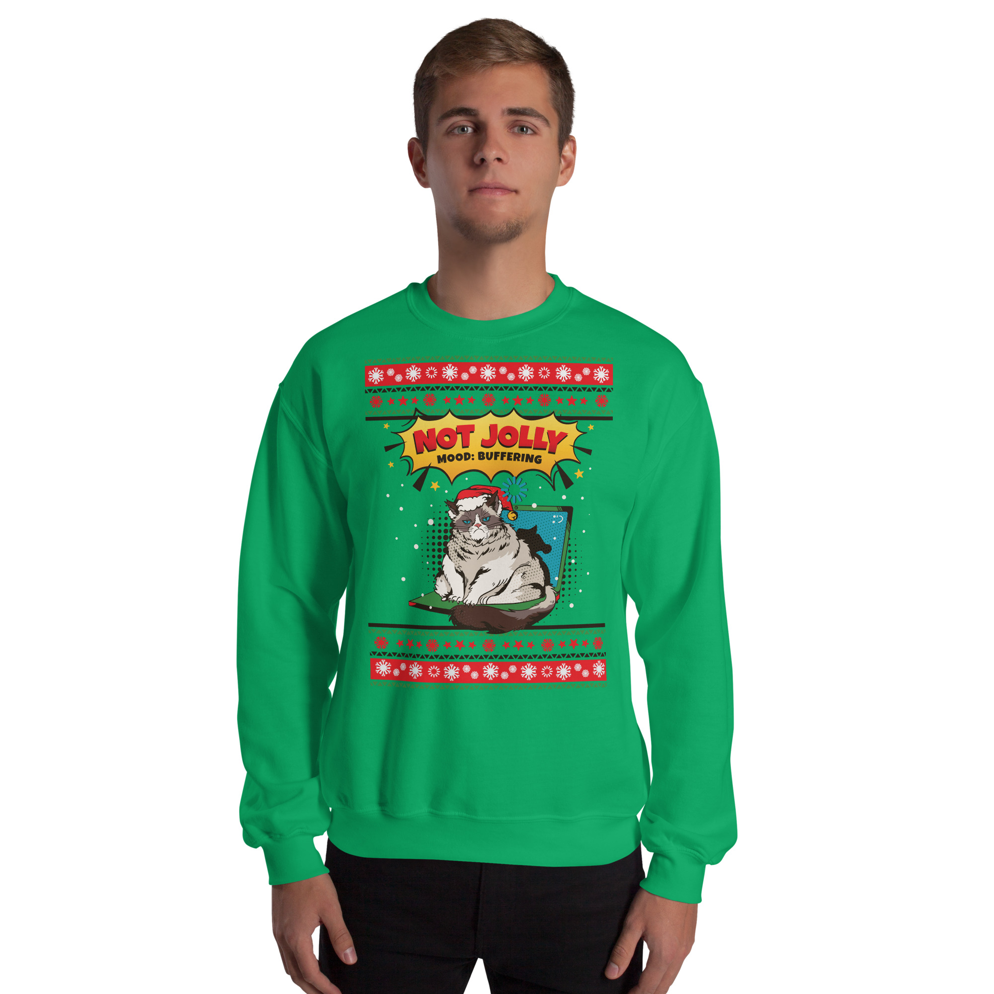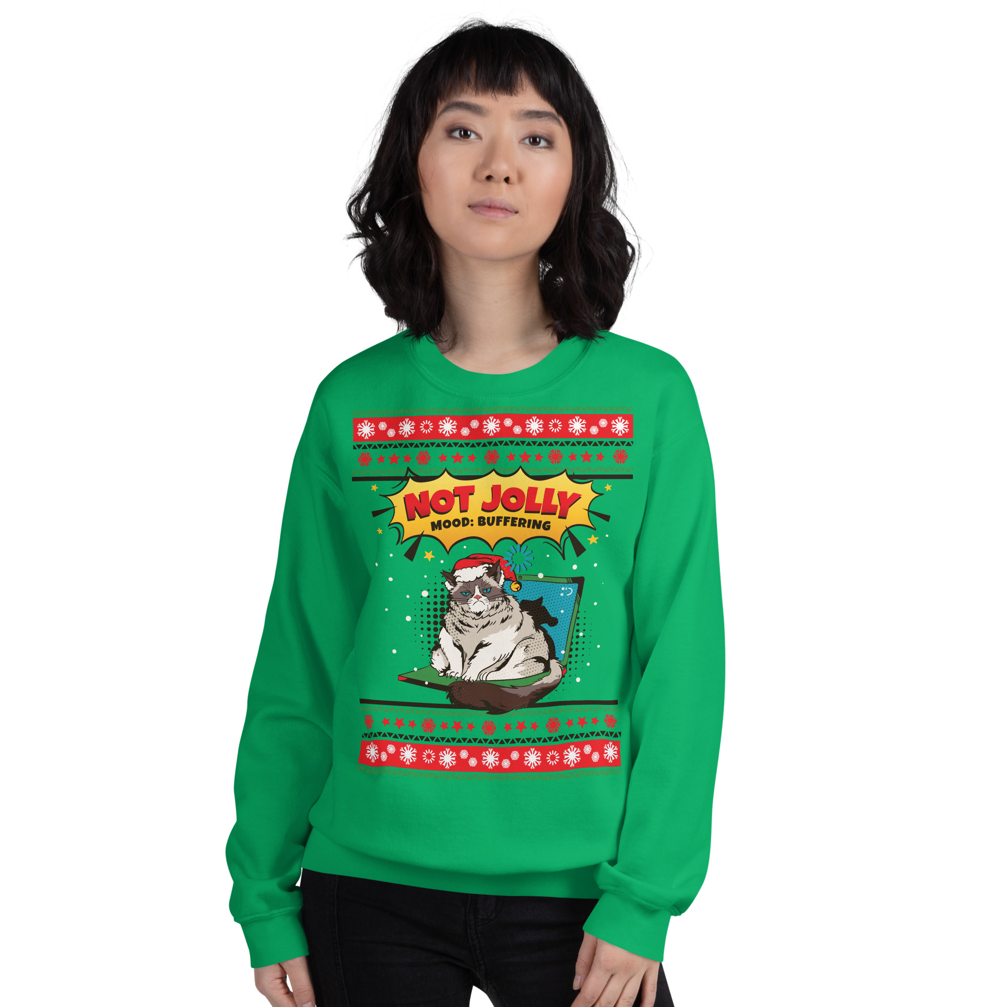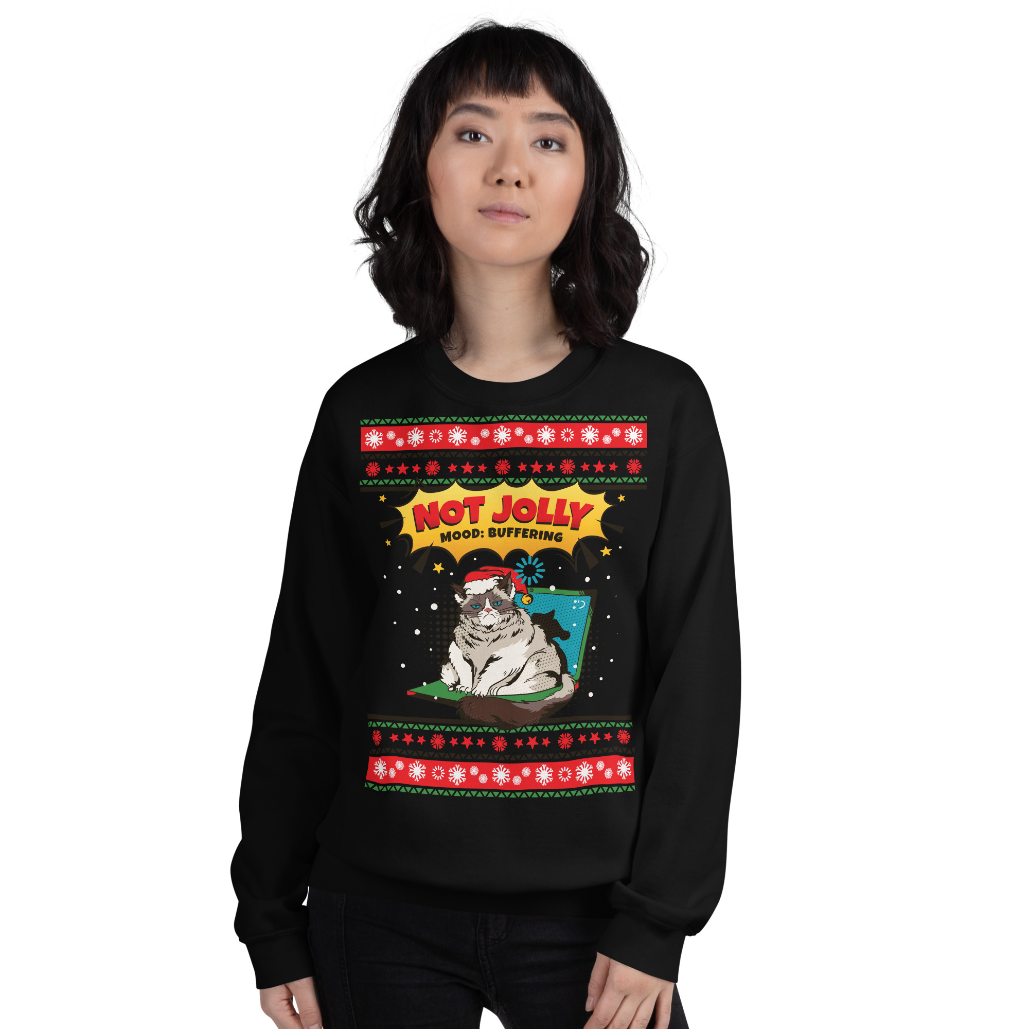 “Not Jolly: Mood Buffering” Grumpy Cat Ugly Sweater (Sweatshirt)